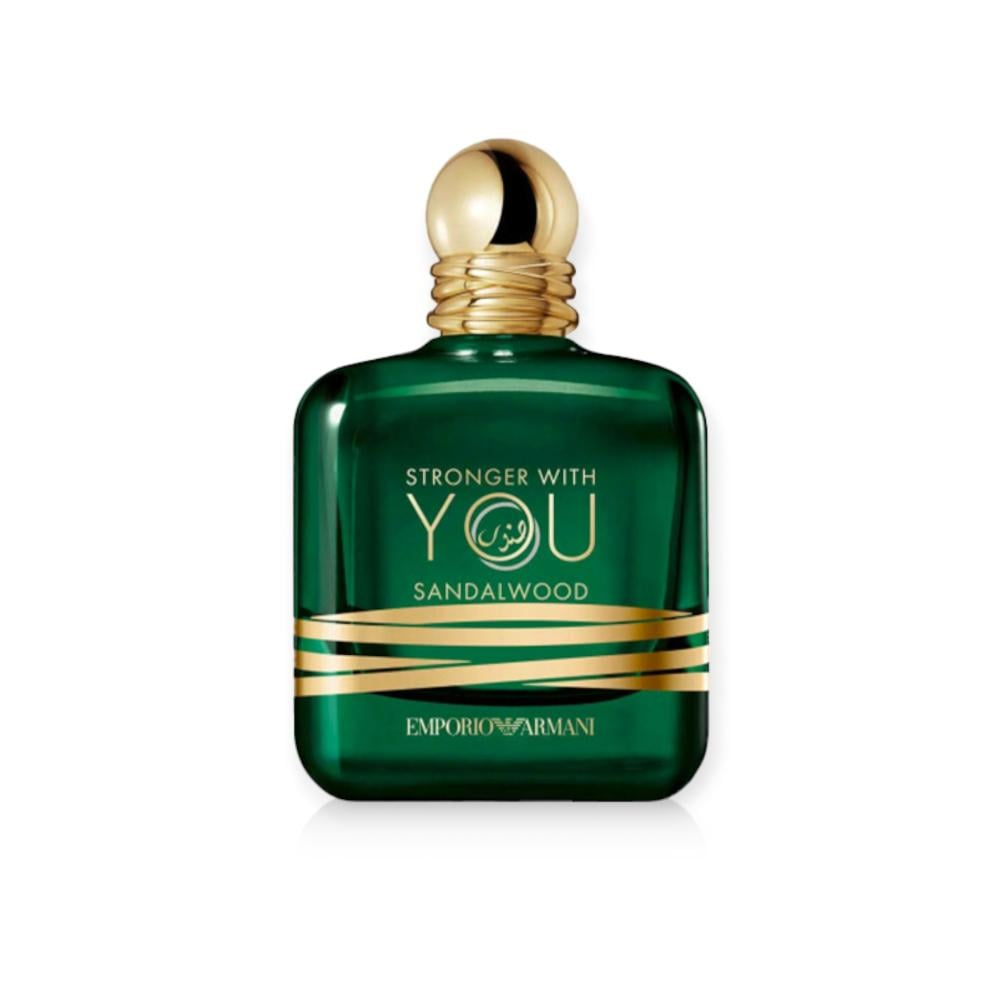 زجاجة ""سترونغر ويذ يو صندل وود"" الأيقونية تتألق بمظهر غامض جديد. اللون الأخضر العميق يعكس الغموض وعمق النفحات الخشبية داخل العطر. يحيط بالزجاجة حلقات ذهبية متداخلة، وهو تصميم يتكرر في الغطاء الذهبي الملموس. لإضافة لمسة نهائية فريدة، كتبت كلمة ""صندل وود"" بأناقة باستخدام الخط العربي باللون الذهبي ضمن اسم ""سترونغر ويذ يو"".